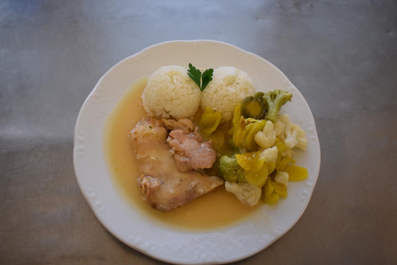 Kurací plátok s ryžou, dusená zeleninka